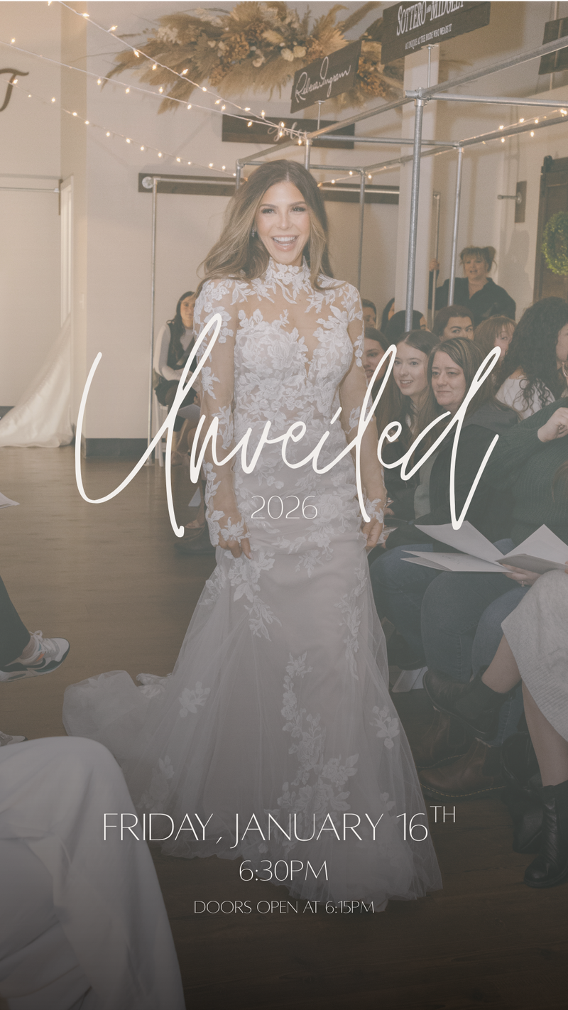 Our most anticipated event of the year! Unveiled is a live runway event featuring our curated collection of gowns, best in store and hot off the runway. This event is for all newly engaged brides that don’t know where to start, or what to expect! Our stress free environment will calm every nerve and get you feeling comfortable and EXCITED! Sit and casually view street sized models, snap photos, find favorites, and best yet: get 10% off your VIP or Luxe VIP appointment if scheduled at the end of the show. You’ll have an opportunity for some awesome giveaways, and as always, our friendly consultants will be standing by to answer all of your wedding questions. Doors open at 6:15!