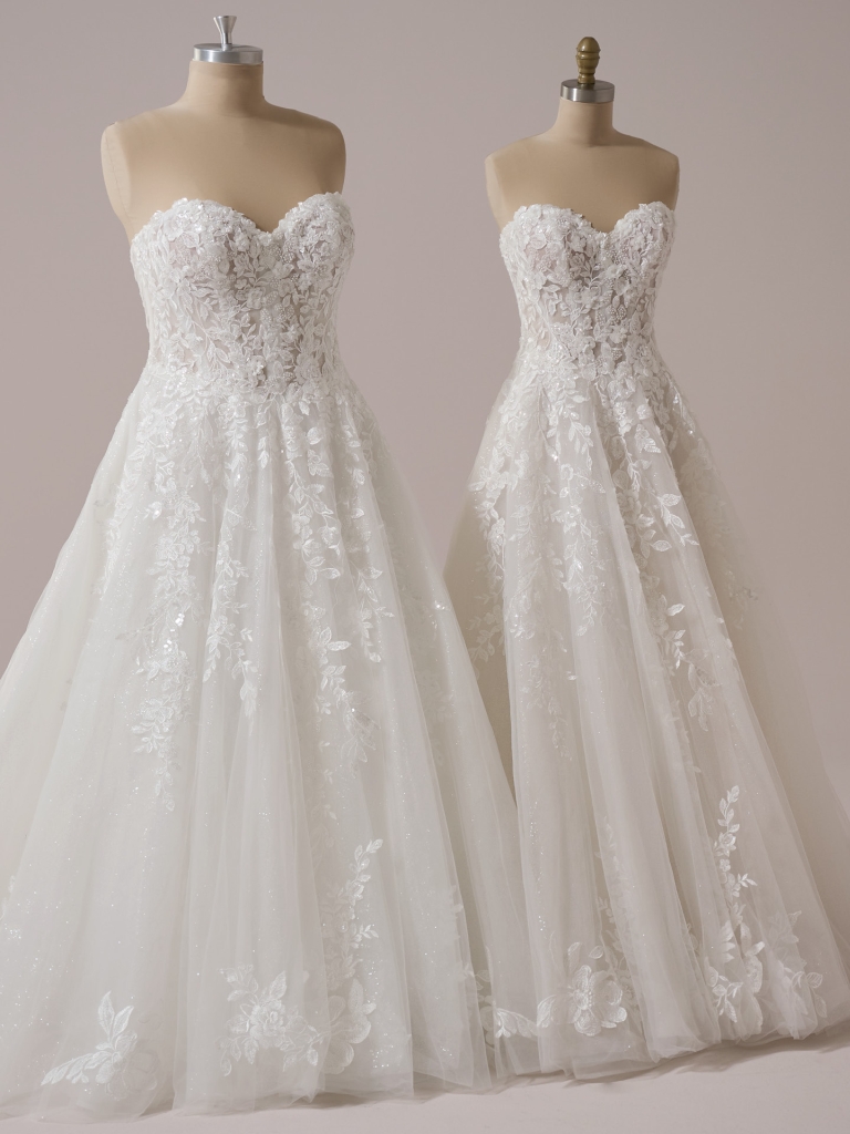 Lace glitter tulle sweetheart neck A-line wedding dress
