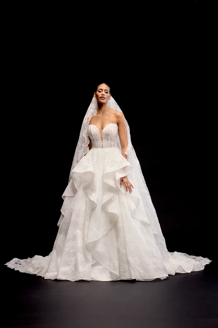 Allover Alençon Lace Ball Gown with Plunging Sweetheart Neckline