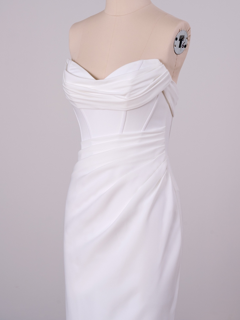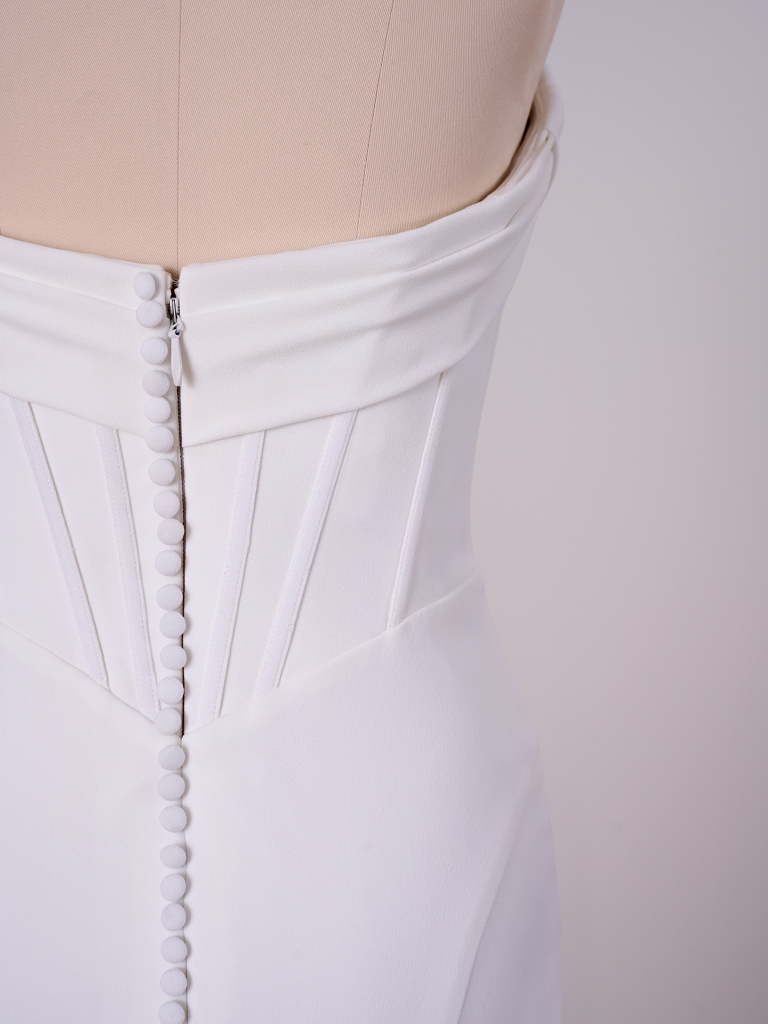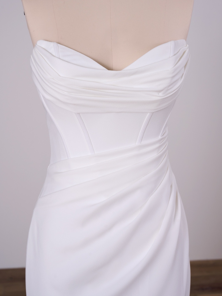Draped front bodice with exposed boning detail and basque waist