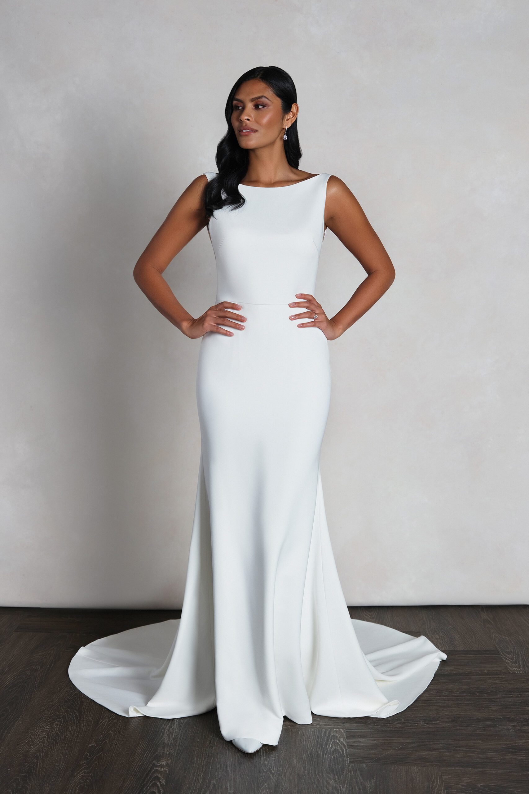 Simple Crepe Fit and Flare with Sabrina Neckline